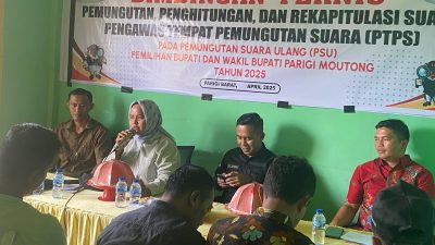 PARIMO, bawainfo.id – Ketua Panwaslu Kecamatan Parigi Barat, Israwati menegaskan kepada seluruh jajaran pengawas, mulai dari Pengawas Kelurahan/Desa (PKD) hingga Pengawas TPS (PTPS), harus memiliki pemahaman yang utuh dan kesiapan penuh dalam mengawal pelaksanaan Pemungutan Suara Ulang (PSU). Dalam arahannya kepada jajaran pengawas saat pelaksanaan Bimbingan Teknis Penguatan Kapasitas Menjelang PSU, Hari Sabtu, 12 April 2025 di Sekretariat Panwaslu Kecamatan Parigi Barat.
