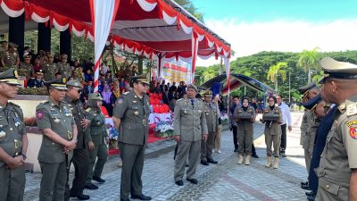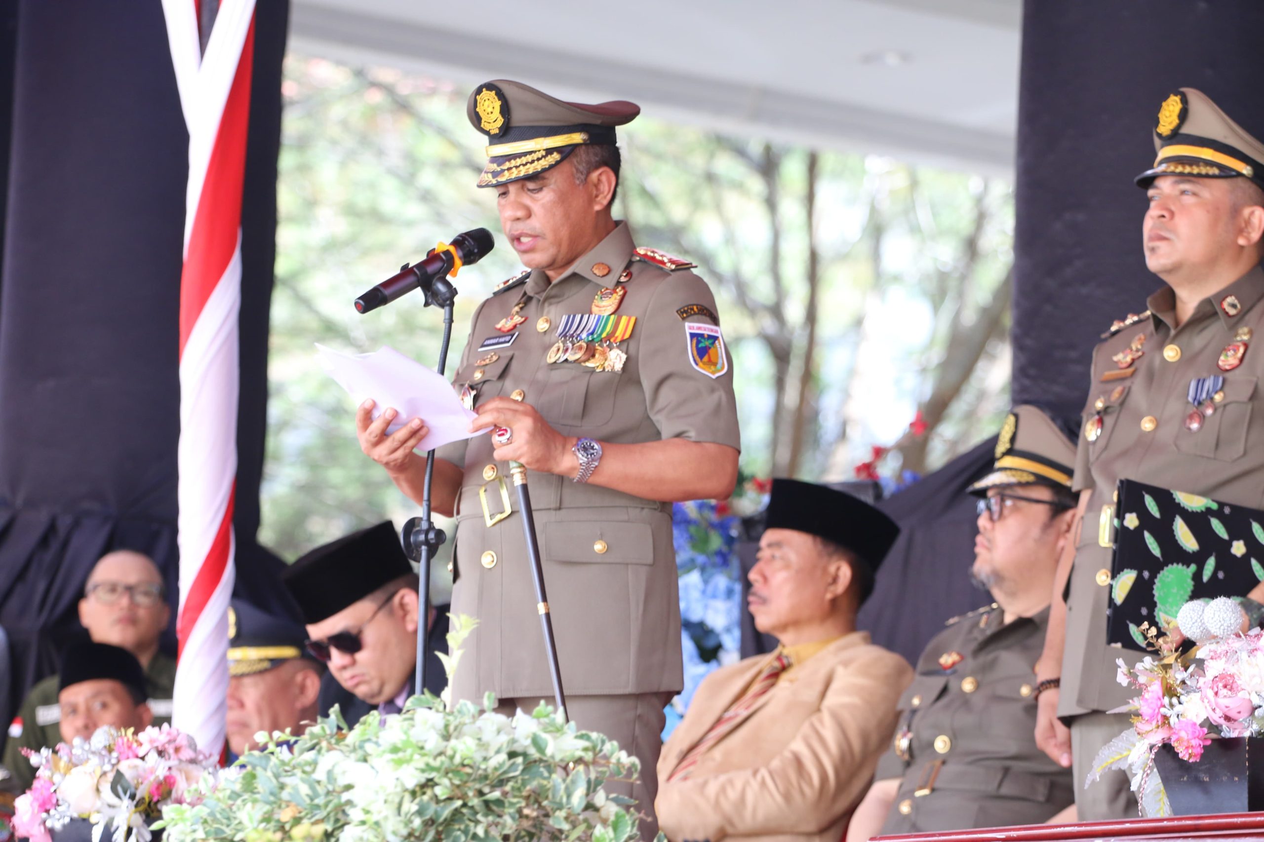 Gubernur Sulawesi Tengah, Anwar Hafid, bertindak sebagai inspektur upacara dan membacakan amanat Menteri Dalam Negeri Republik Indonesia. Dalam sambutannya, Mendagri menegaskan pentingnya peran ketiga elemen tersebut sebagai garda terdepan dalam menjaga keselamatan dan ketertiban masyarakat.