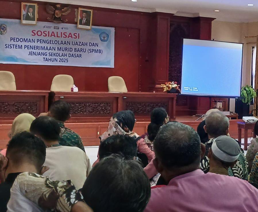 Sosialisasi digelar di Aula Lantai 2 Kantor Bupati Parigi Moutong, dipimpin langsung oleh Kepala Bidang Manajemen Pembinaan Sekolah Dasar, Ibrahim. Jumat, 23 Mei 2025.