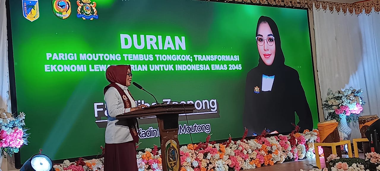 PARIMO, bawainfo.id – Pembukaan acara pembukaan Focus Group Discussion (FGD), Ketua Kamar Dagang dan Industri Indonesia (KADIN) Kabupaten Parigi Moutong, Faradiba Zaenong, menyampaikan sambutan penuh semangat dalam momen penting ekspor perdana durian beku dari Indonesia ke Tiongkok, di mana Kabupaten Parigi Moutong mendapat kehormatan sebagai tuan rumah.