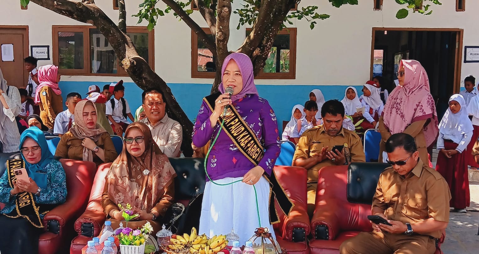 PARIMO, bawainfo.id – Bunda Pendidikan Anak Usia Dini (PAUD) Kabupaten Parigi Moutong, Hesti Yahya L. Nanga, turun langsung ke lapangan meninjau pelaksanaan Masa Pengenalan Lingkungan Sekolah (MPLS) di sejumlah sekolah, Senin, 14 Juli 2025.