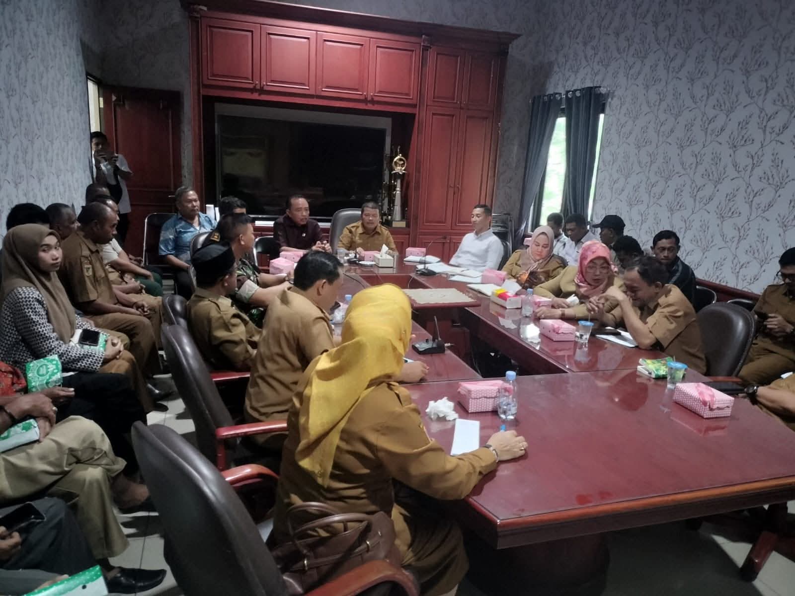 Suasana rapat pembahasan normalisasi sungai di tiga desa, dipimpin Wakil Bupati Parigi Moutong H. Abdul Sahid, bersama Ketua DPRD, Forkopimda, dan sejumlah kepala OPD di Ruang Rapat Bupati, Senin (20/10/2025).