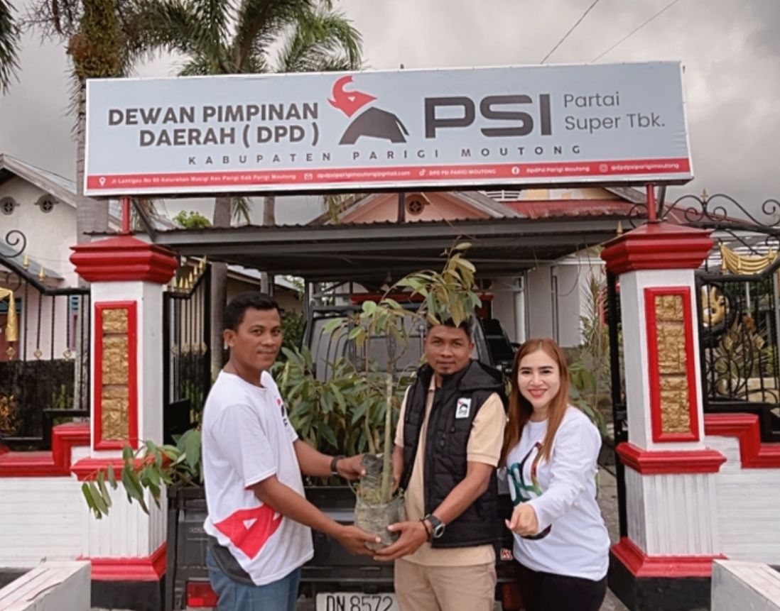 PARIMO, bawainfo.id – Dewan Pimpinan Daerah (DPD) Partai Solidaritas Indonesia (PSI) Kabupaten Parigi Moutong (Parimo) terus memperkuat basis massanya melalui pemberdayaan ekonomi. Komitmen ini diwujudkan dengan menyerahkan bantuan 200 bibit Durian Montong kepada pengurus Dewan Pimpinan Cabang (DPC) PSI Tinombo Selatan,